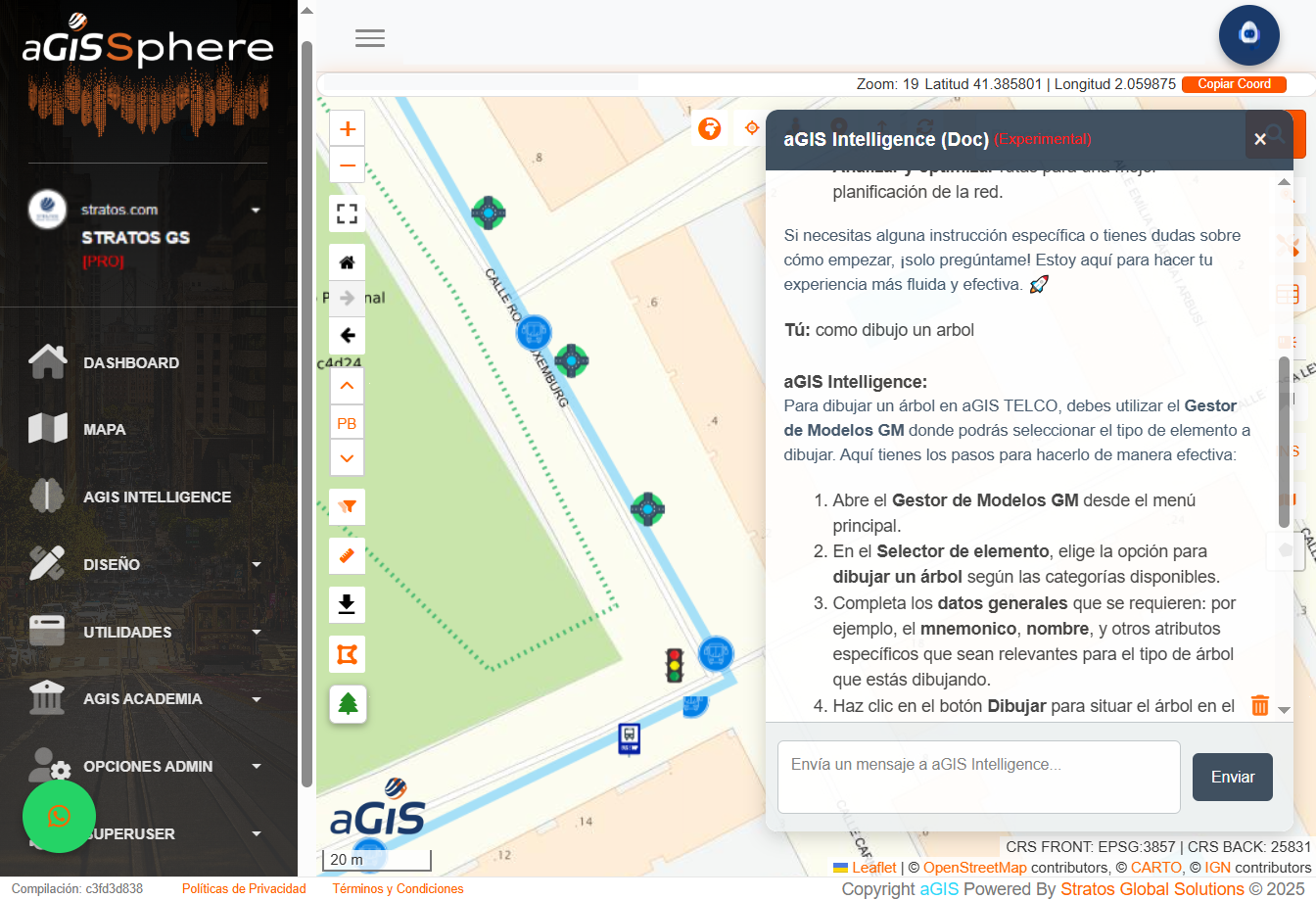 aGIS SPHERE es un software GIS destinado a la digitalización y gestión de Activos Urbanos integrado con Inteligencia Artificial y sensorización IoT.