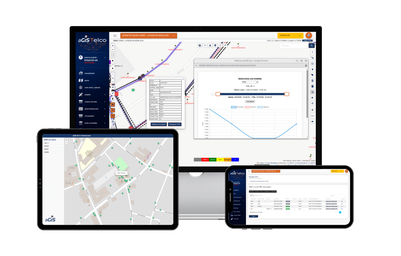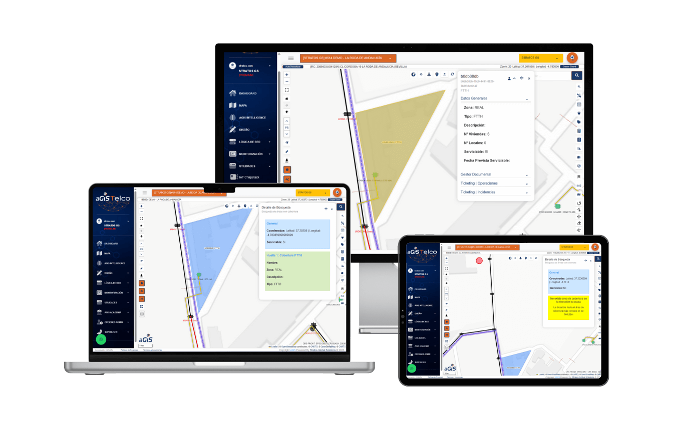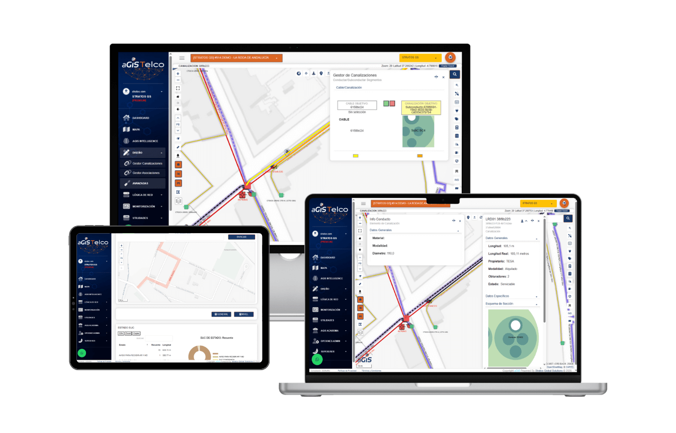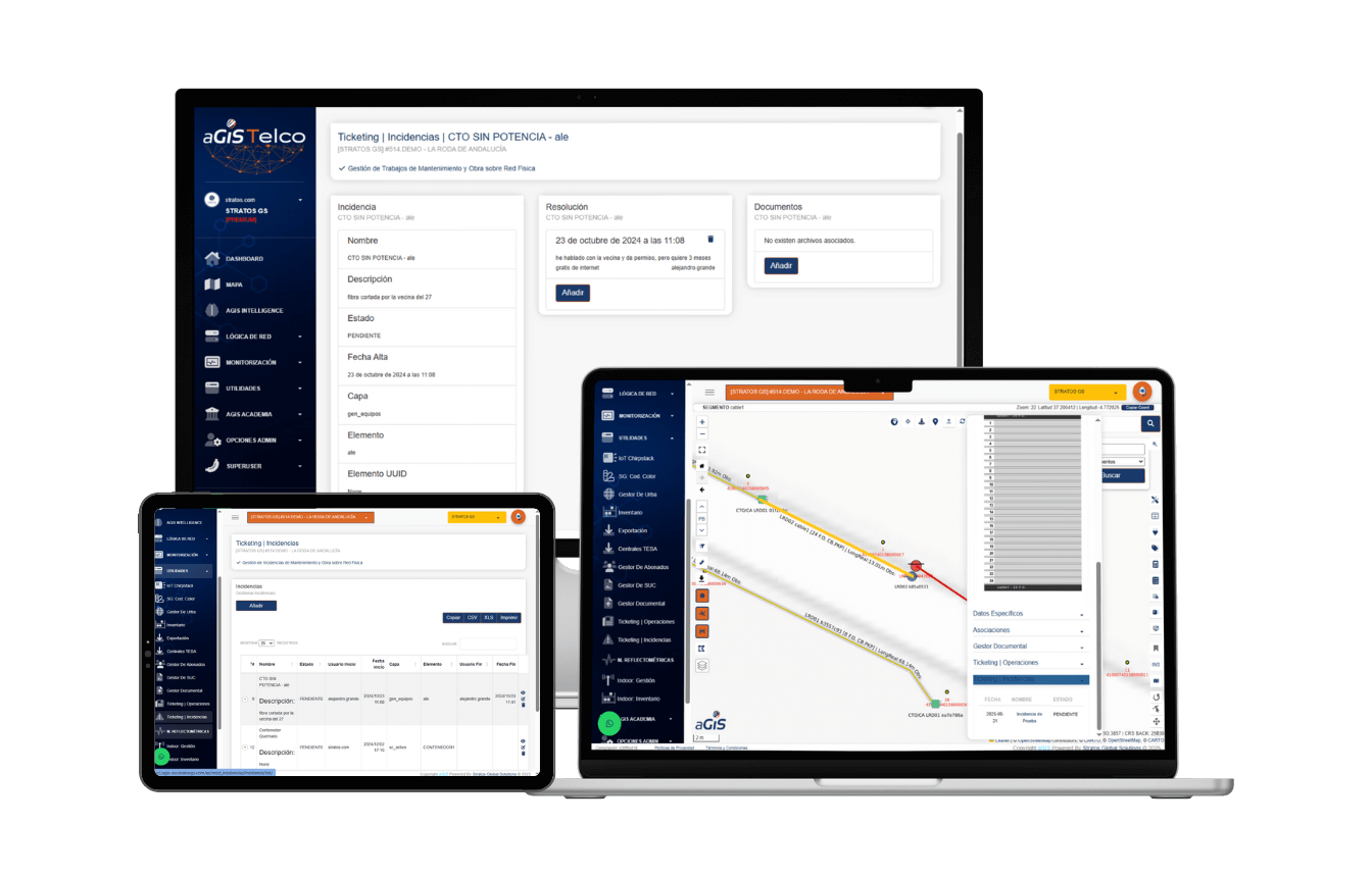 aGIS TELCO no solo permite digitalizar toda la red y llevar un control óptimo sobre ella. Es una herramienta completa y ofrece todas las soluciones posibles y necesarias para un operador de telecomunicaciones.